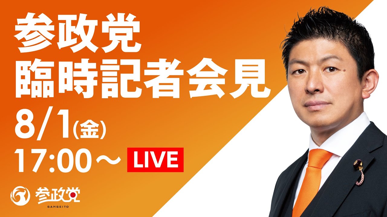 【LIVE】参政党緊急記者会見ライブ配信!8月1日(金)17:00~ - YouTube