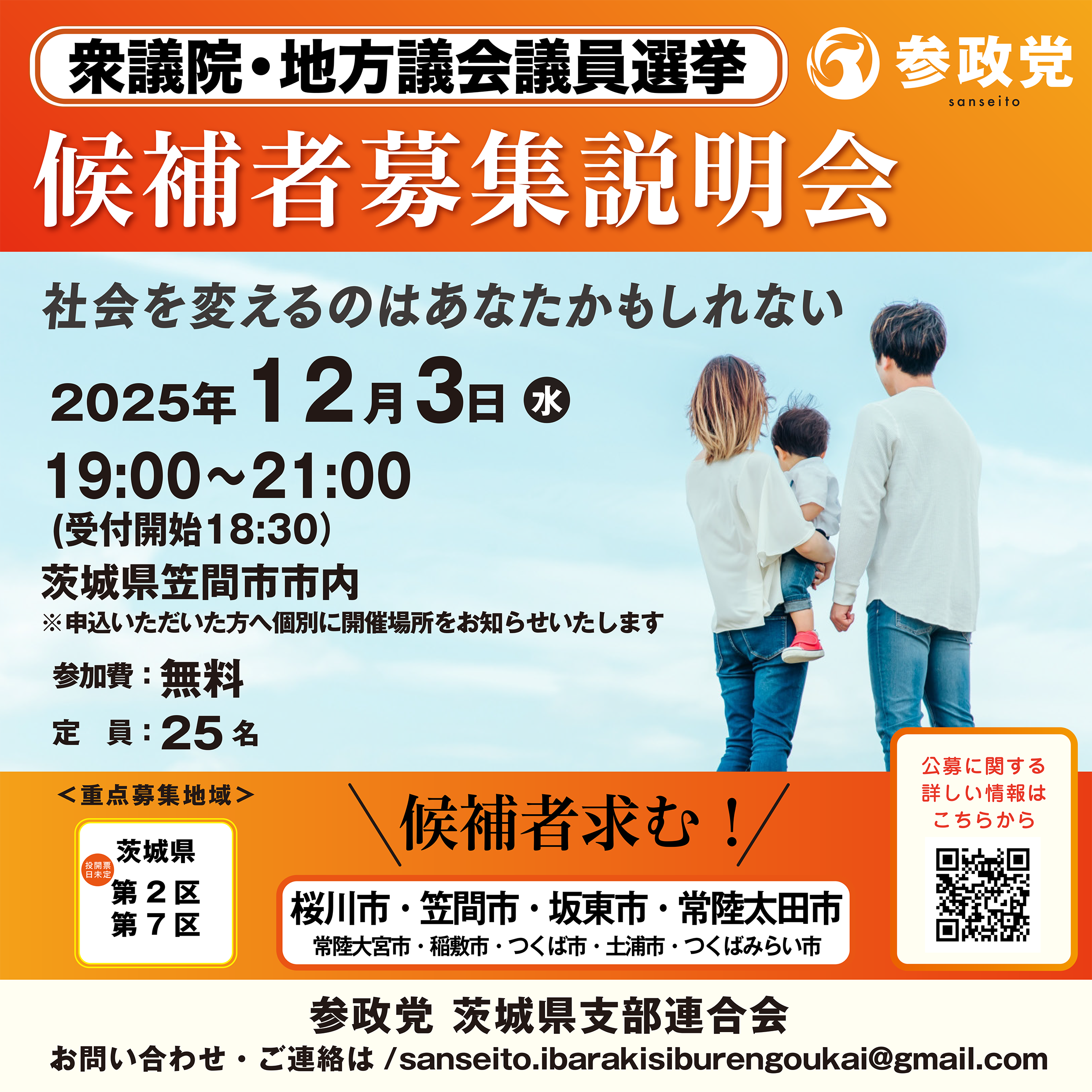 12/3(水) 衆議院・地方議会議員候補者募集説明会 (茨城県笠間市) 酒井正輝