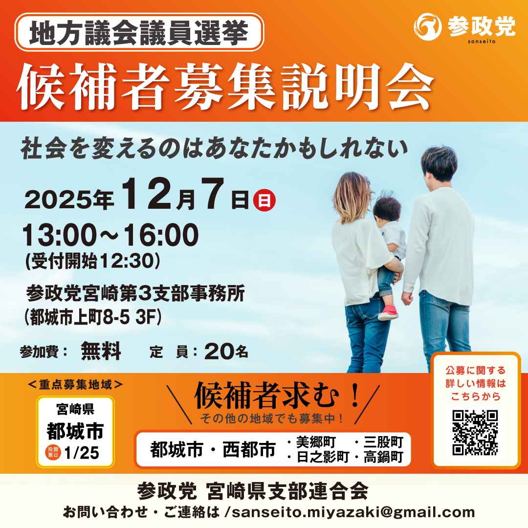 12/7(日) 地方議会議員選挙候補者募集説明会 (宮崎県都城市) 宮崎県支部連合会