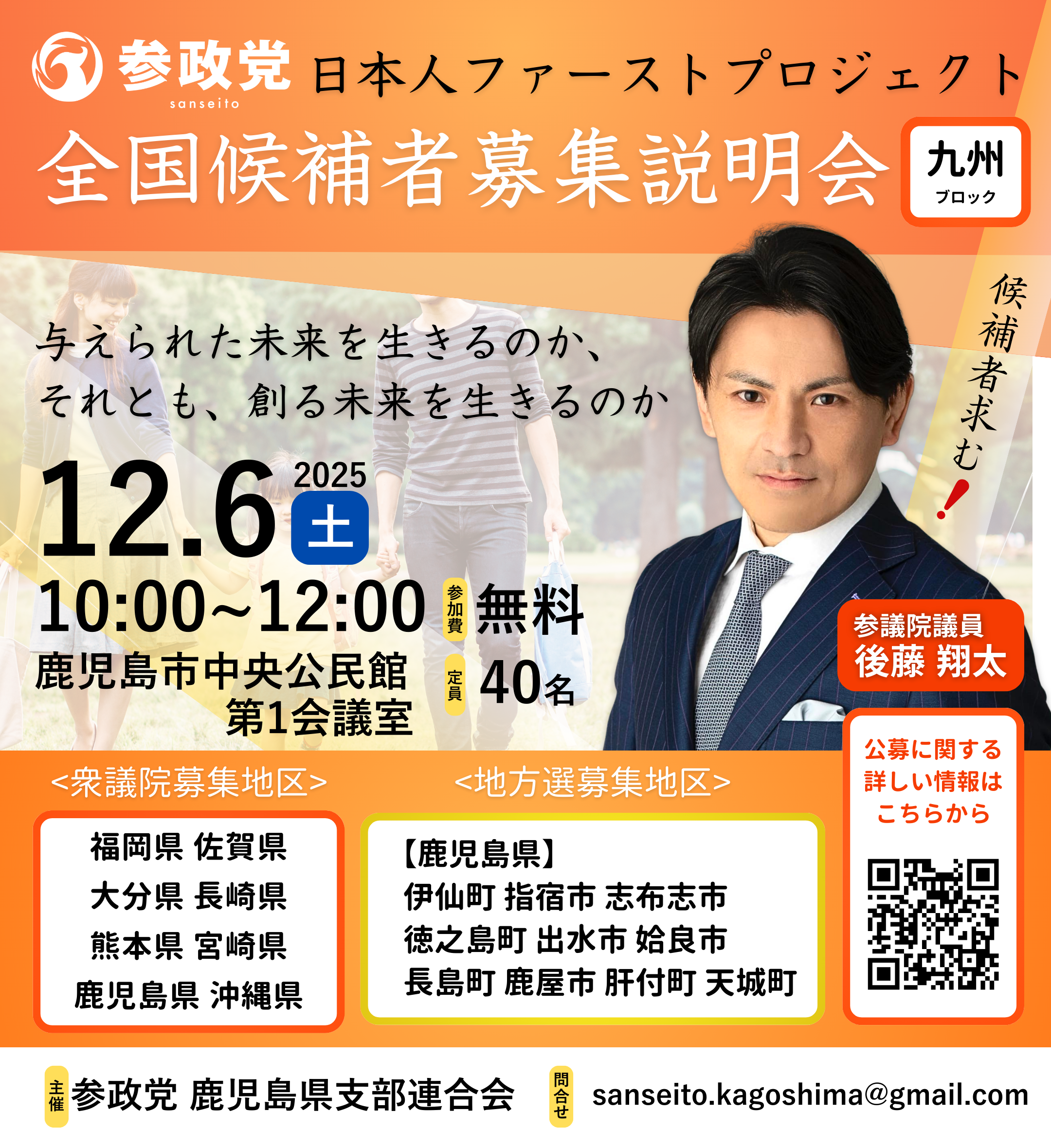 12/6(土) 全国候補者募集説明会 (鹿児島県鹿児島市) 後藤翔太