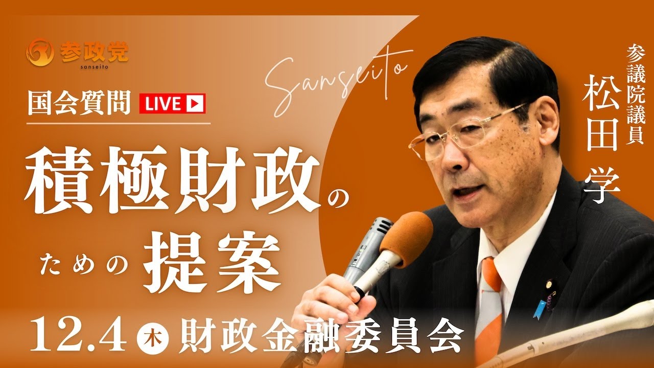 【国会中継】15:00~「医療法等改正案に関する質疑」参議院議員 松田学 国会質疑 令和7年12月1日 参政党 - YouTube