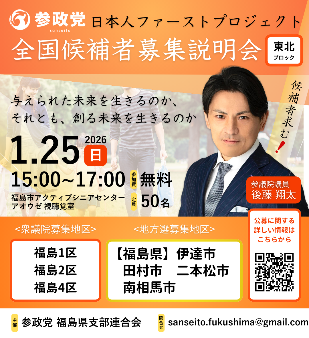 1/25(日) 全国候補者募集説明会 (福島県福島市) 後藤翔太